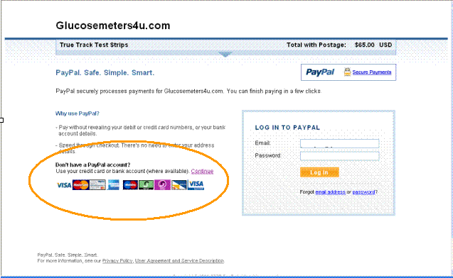 in the "Don't have a PayPal account" section, highlighted above. Some